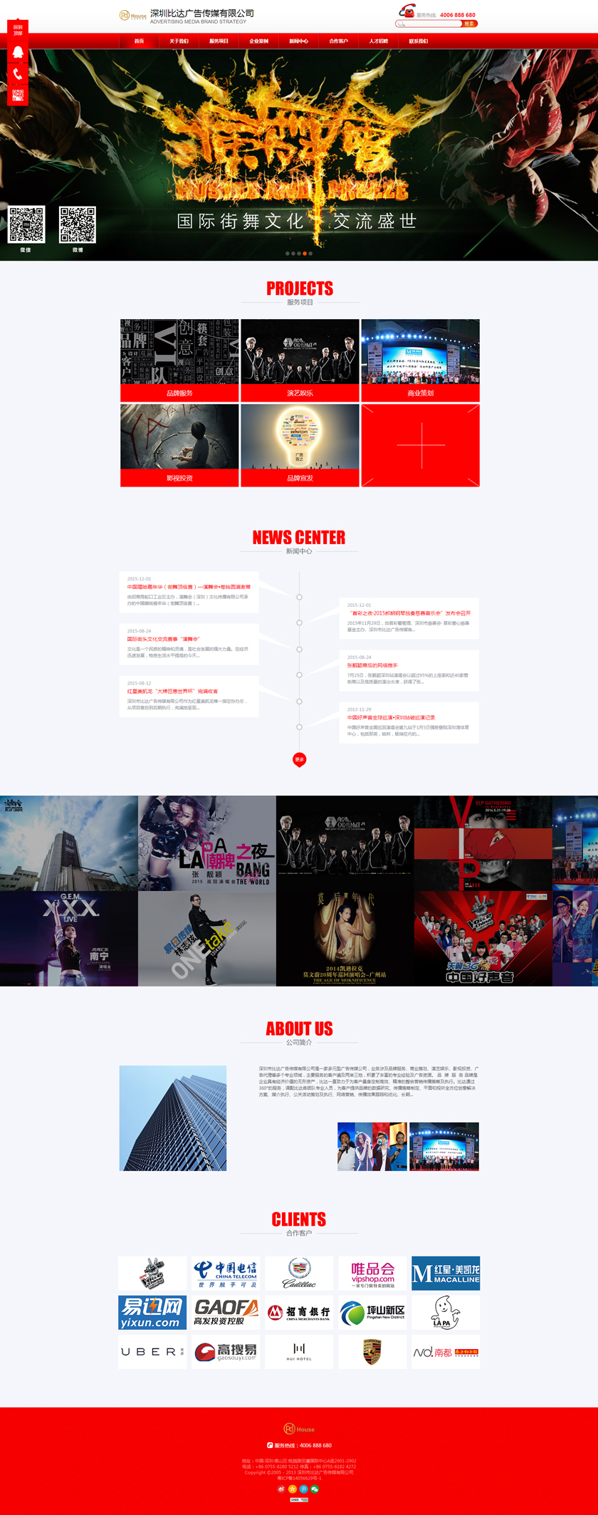 Project Description 深圳市比达广告传媒有限公司是一家多元型广告传媒公司,业务涉及品牌服务、商业策划、演艺娱乐、影视投资、广告代理等多个专业领域,主要服务的客户遍及两岸三地,积累了丰富的专业经验及广告资源。 Official website address 泰安http://www.pdhouse.com I want to share